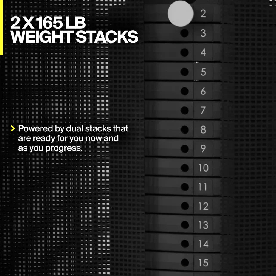 • Two 165 lb weight stacks (330 lb total)