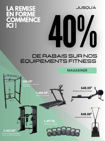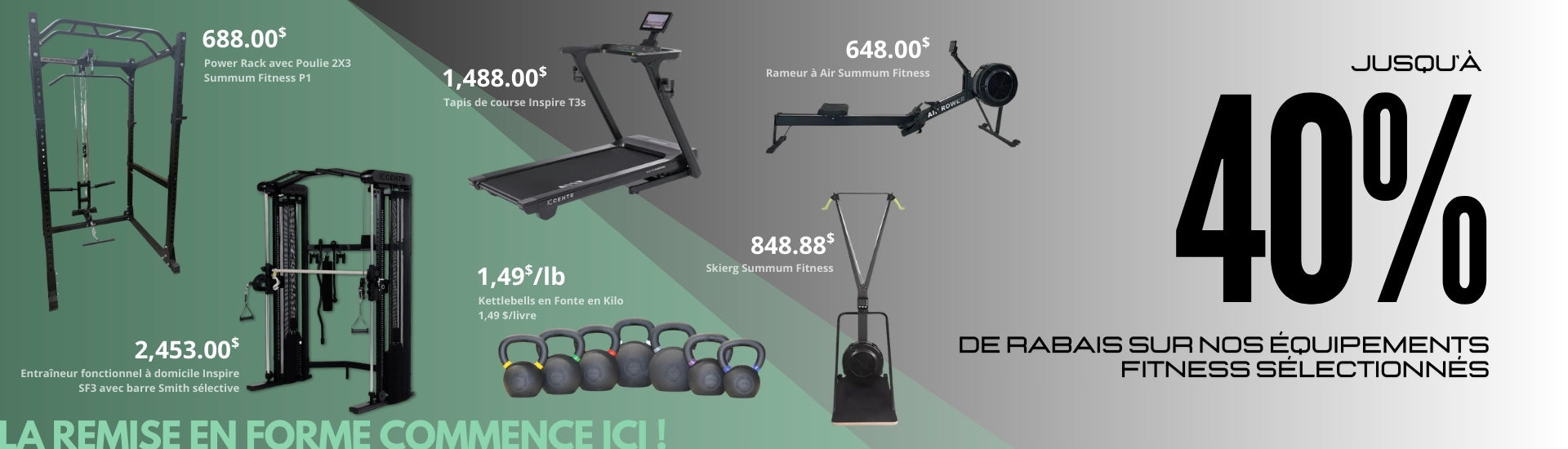 Bienvenue chez Summum Fitness, votre destination ultime pour l'équipement de fitness et de gym à domicile de haute qualité au Canada. Nous proposons une large sélection de produits d'entraînement pour tous les budgets, que vous cherchiez à installer une salle de sport complète à domicile ou simplement à trouver des équipements spécifiques pour vos séances d'entraînement. En tant que magasin de fitness de confiance, nous fournissons à nos clients les meilleurs équipements de gym disponibles au Canada pour vous aider à atteindre vos objectifs de remise en forme facilement dans le confort de votre maison.
