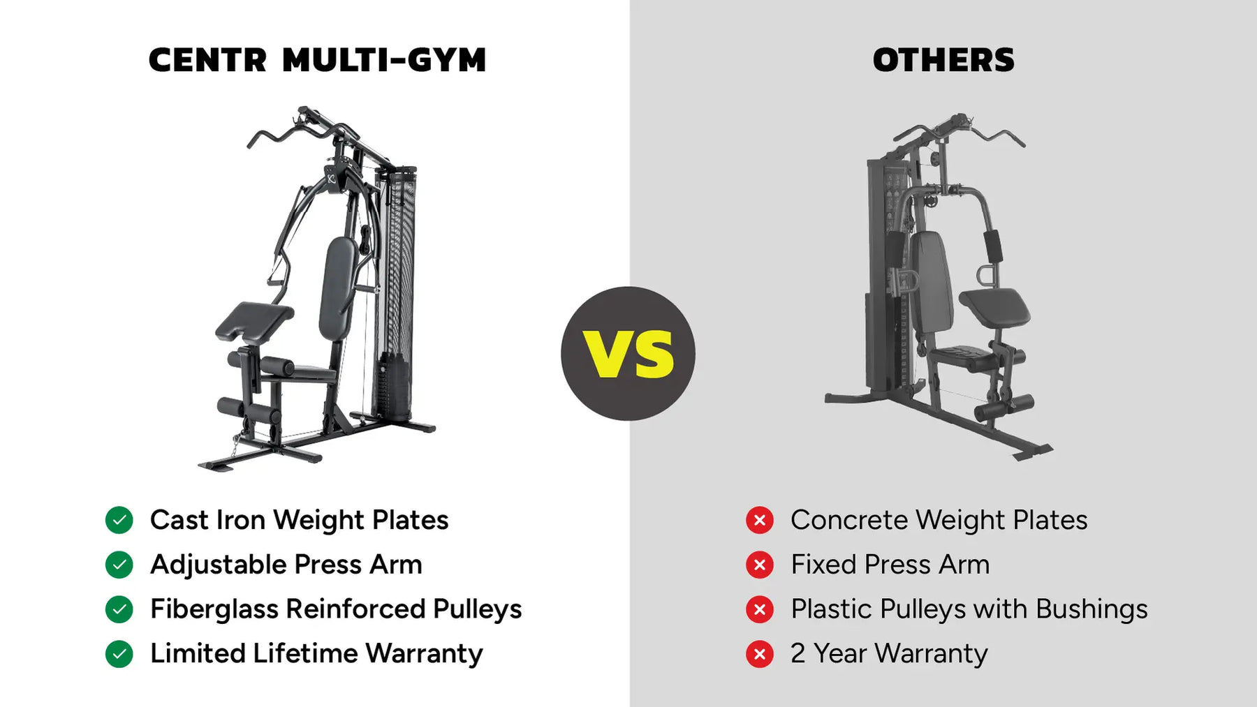 The Multi-Gym MG1 delivers a full body workout in a compact, durable design. The Multi-Gym is equipped with 150 lb. cast iron weight stack and is encased in a soft fabric shroud to minimize noise in your home gym. Complete over 100 exercises with the multi-angle and adjustable press arms, high and low pulleys for dynamic movements and free movement handles for safe and effective shoulder exercises. The comfortable leg curl and extension station provides optimal positioning for lower body workouts. Constructed with an ergonomic seat, commercial-grade steel, fiber-glass reinforced pulleys and urethane coated steel cables, this Multi-gym will last through the most rigorous of workouts thanks to its Lifetime warranty.